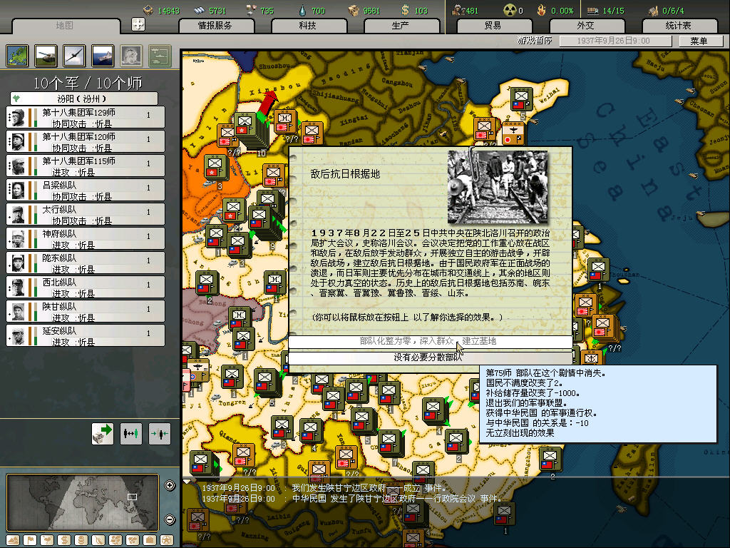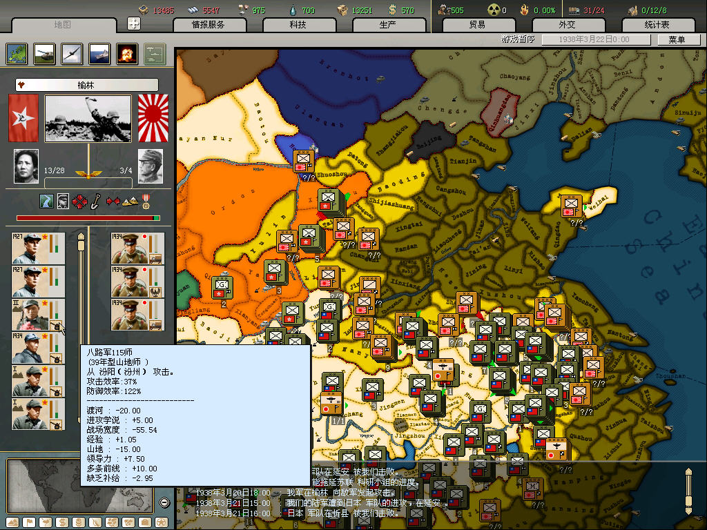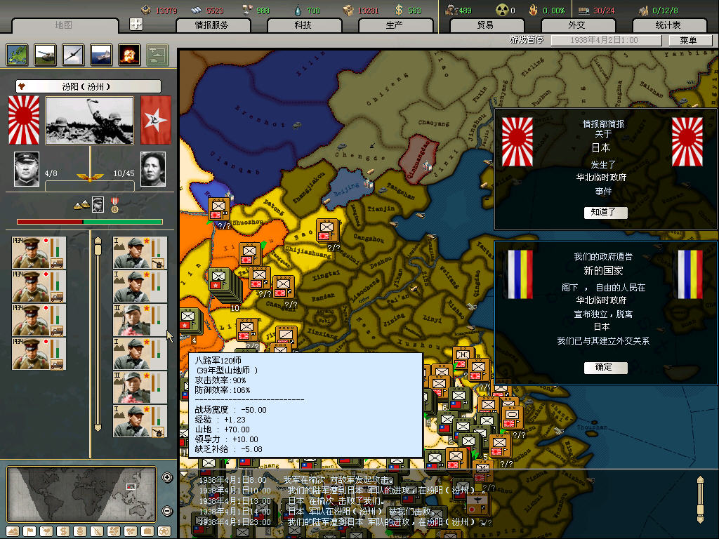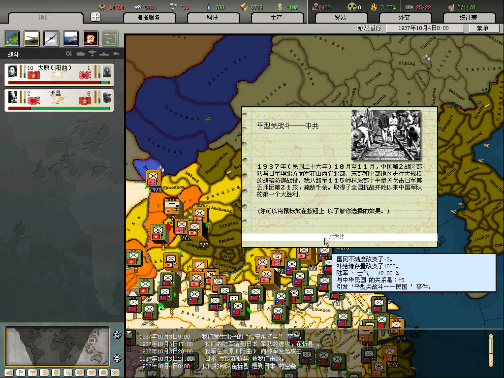 汾阳空虚是这份战报的基础,因为MIH里77事变日本并未向中共宣战,空门的几率不低,个人经验是3成左右