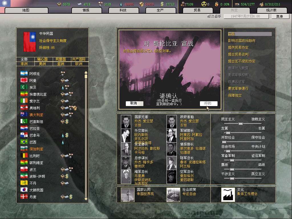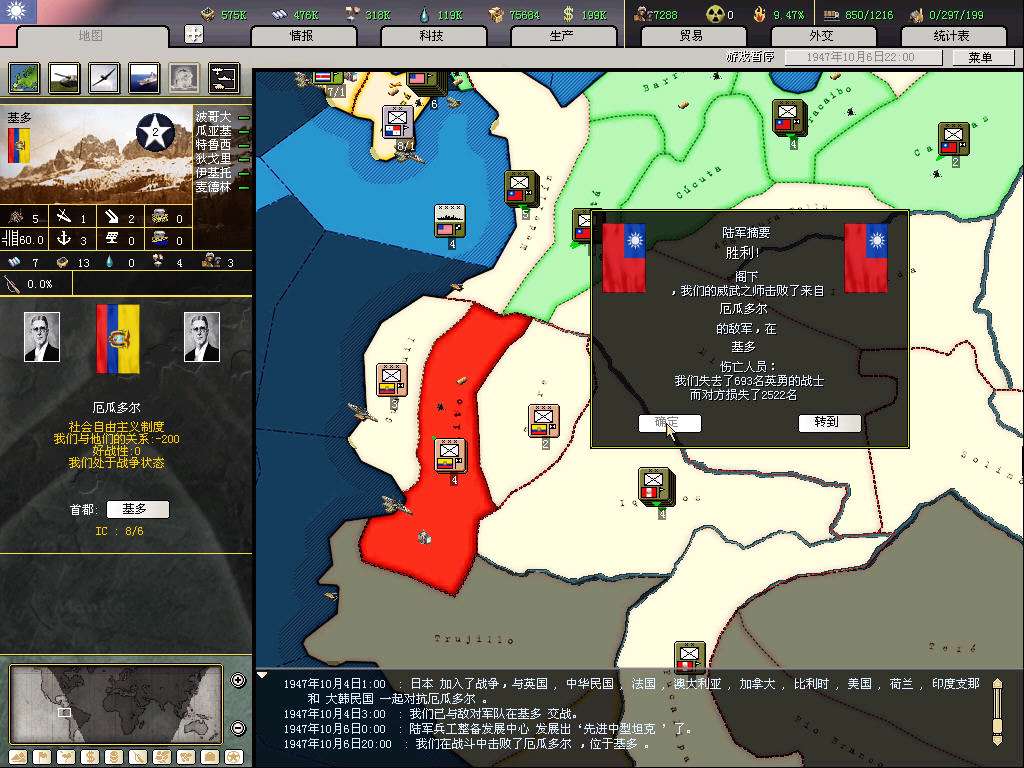 继续宣秘鲁,基本是目前最后一个宣战的美洲国家,剩下的国家都大片靠着海,容易被盟友抢地,最关键宣多了国家好战太高,以后退盟后被美帝宣的概率会变大