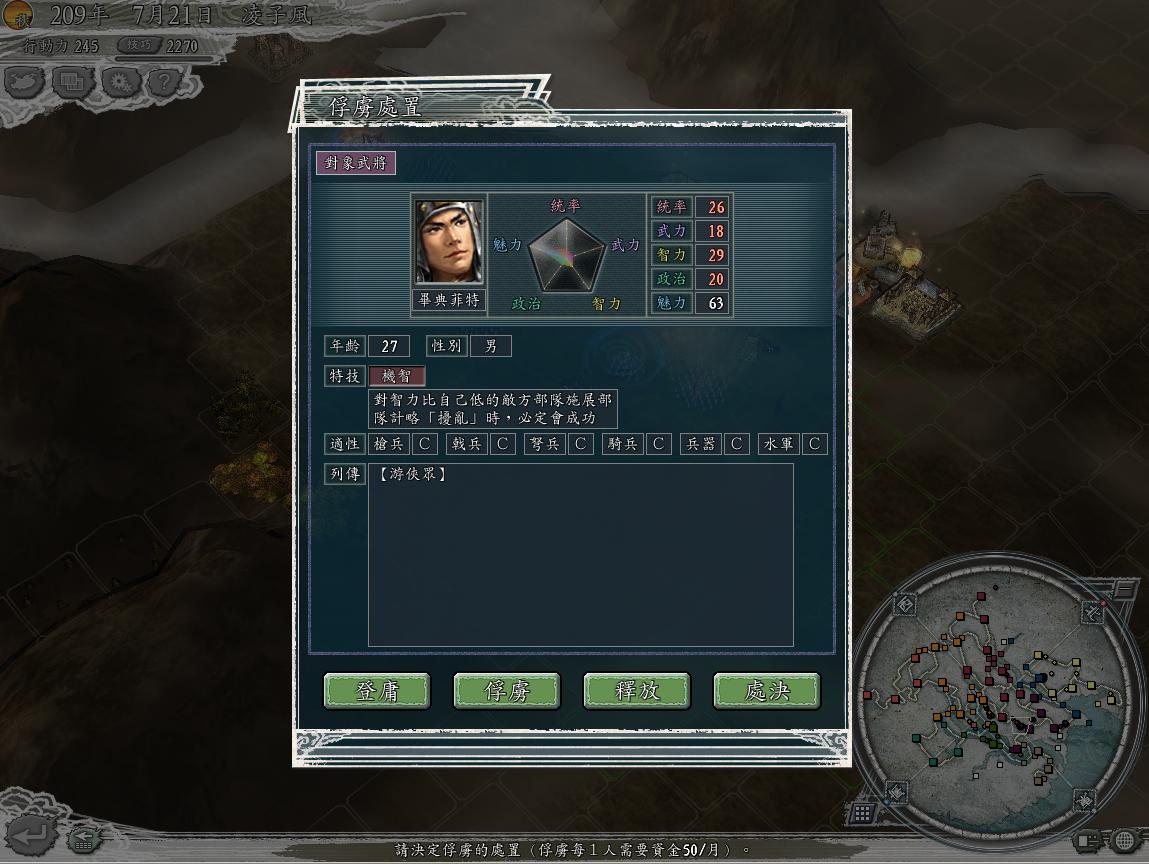 仔细盘点敌军进犯之敌人.靠!还有个7百多人的MM冲车队 而且还带着个俘虏来...此俘虏是刘猿猴军的英雄刘备,看忠诚度已经掉到93了.
