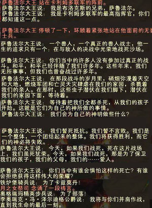 尽管双方语言不能沟通,但还是可以通过表情和行为来传达意思.我曾和一名部落的术士一起做雪人皮毛的任务,那个物品可以从怪身上拿,也可以通过剥掉怪的皮来取得.于是,魔兽史上神奇的一幕出现了,一个亡灵术士在前面打死一个个的雪人,而暗夜精灵牧师跟在他后面剥下一张张的皮,如果他遇到危险,虽然牧师不能给他加血,但可以用心灵震爆把怪引开,或是用鞭笞帮他把最后一点血打掉.