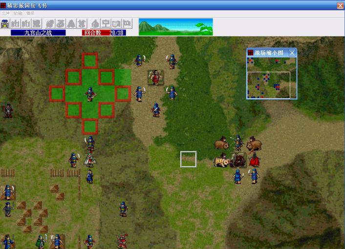 当张宪中了5个毒烟和3~4个落石后,剩余HP很少,余化龙要提前把身边的三个敌人往山下引远离张宪防止发生反击。同时还要保护牛皋,因为此时牛皋的HP也很少了,要防止对他落石的贼兵下回合跑去对牛皋落石。