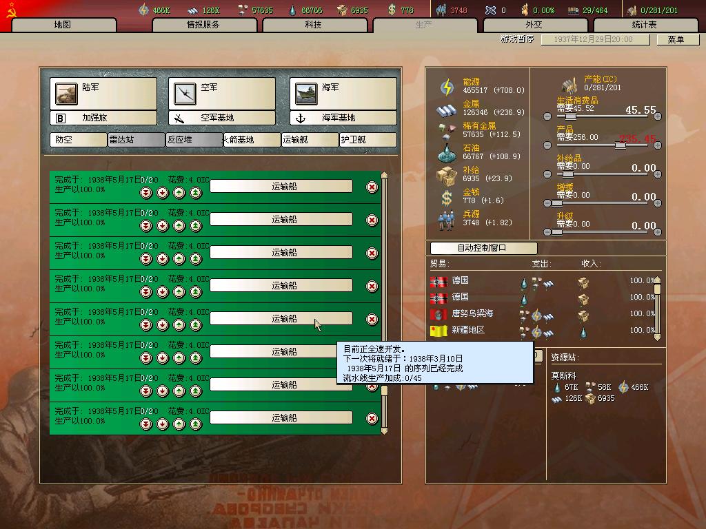 大清洗马上就要开始了,又要清理不满,不必继续种地,做一些周期短一点的运输船吧。迟早用得着。