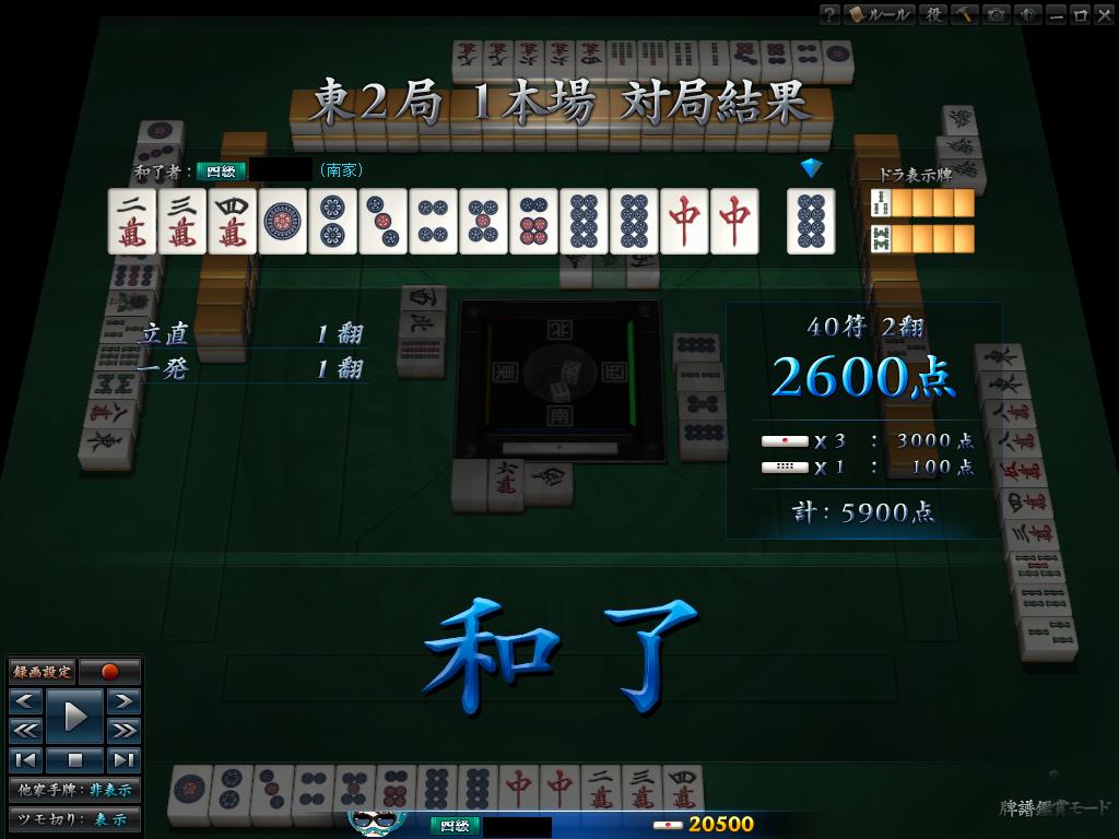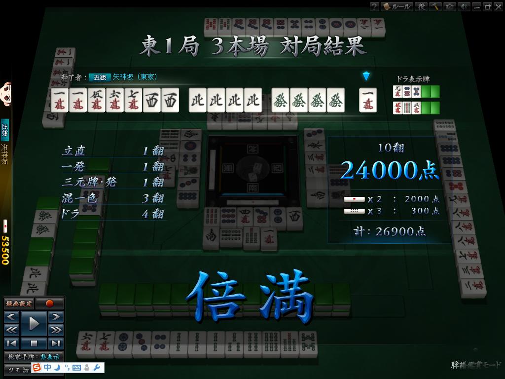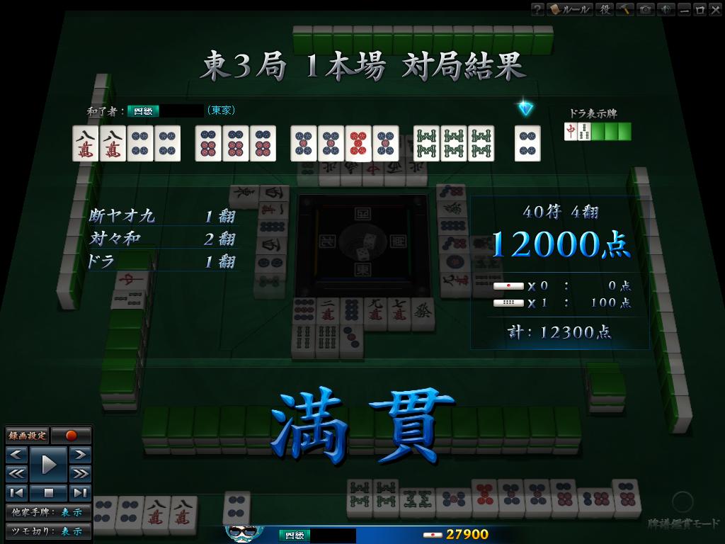 地狱单骑纯全带,上家喂牌真犀利~~~