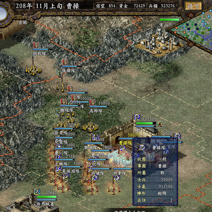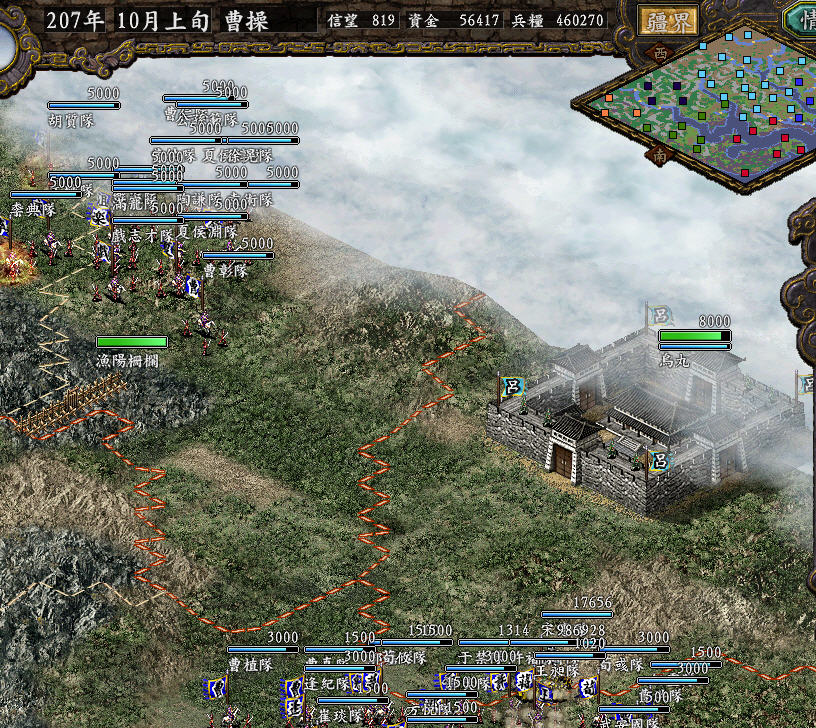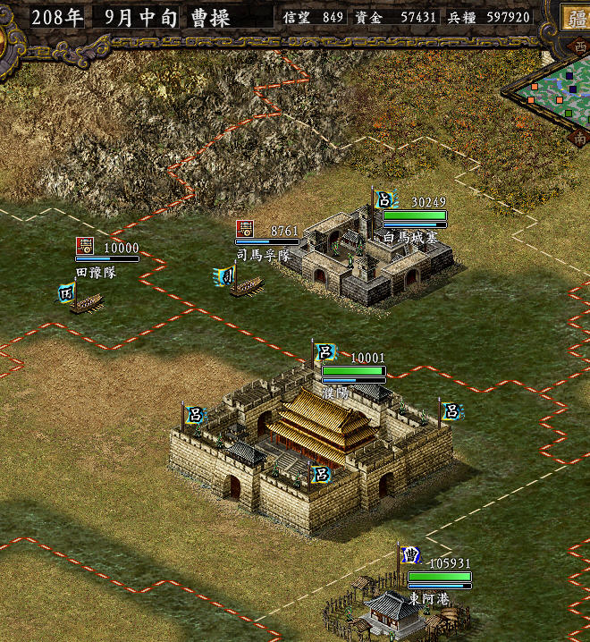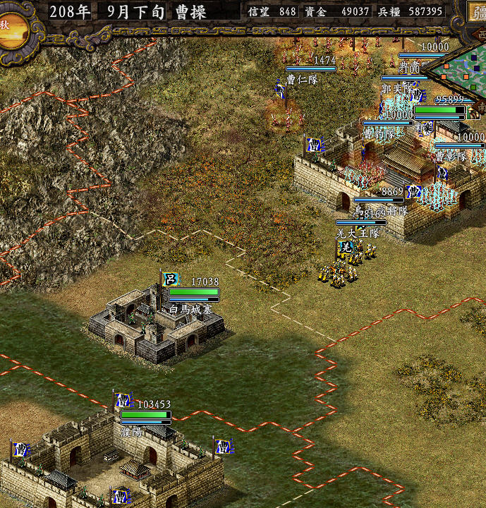 说得好,我是等联盟瓦解后才北上的。另外在北上时,我在小沛留了30万兵。我只动用了15万兵北上的。小沛的大量兵力,电脑是不会进攻的。但是等我把小沛部队也拿到南皮后,小沛就危险了。