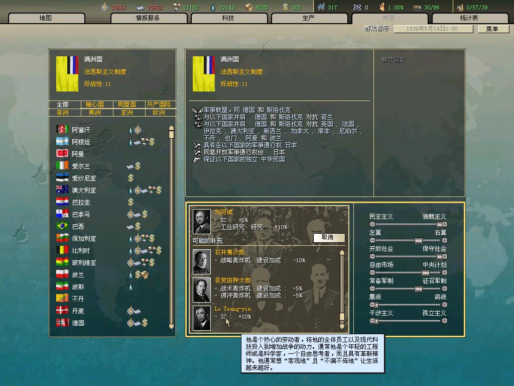 换上加人力的安全部长和加IC的军械部长,略微提高人力增长和工业生产能力。