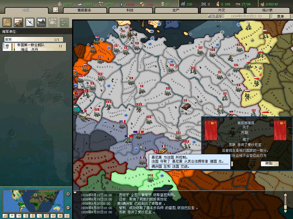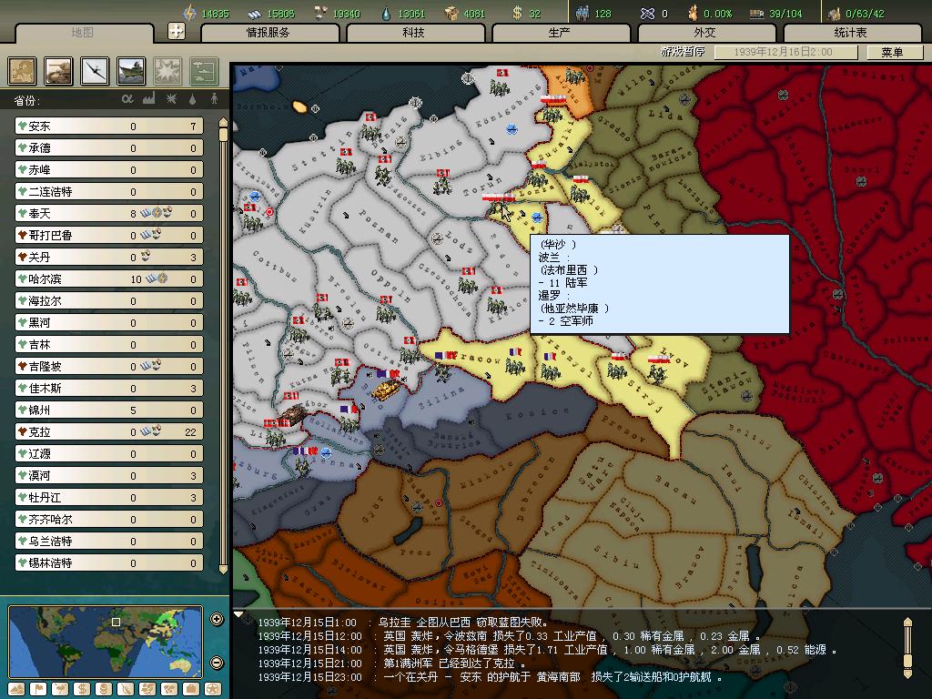 标题: DA1.3原版36满州国娱乐战报, 已更新至:1948年夏季 中日满轴心对抗英法美同盟 欧洲反攻势如破竹 攻陷华沙 吞并波兰!