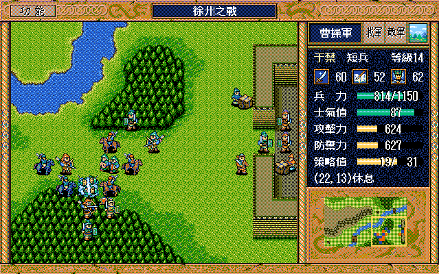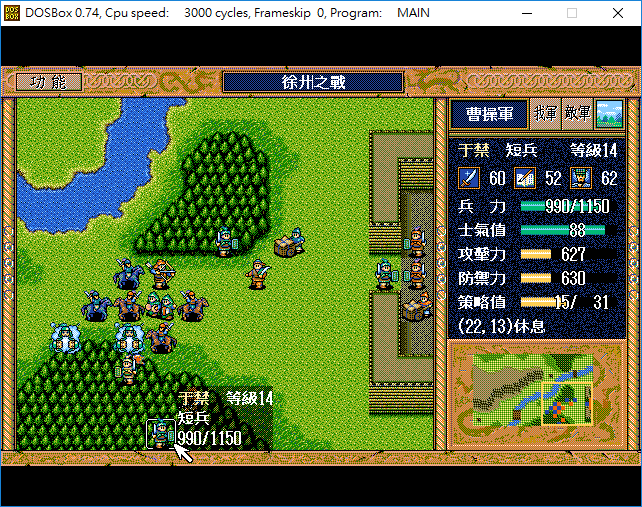採用GB4,隨機數、天氣自選、兵力,士氣恢復最小、攻擊性,輔助性策略自選、反擊自選