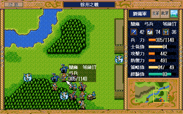 我 趙右攻騎兵3,劉右焦熱(成功) 張上攻滅步兵3,關上攻 純右射滅弓兵3,簡右1上2射 藩右上攻滅騎兵2