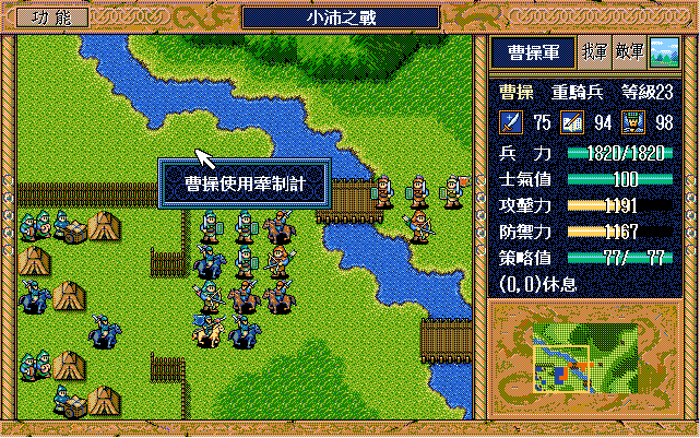 敵 騎兵3下攻 曹操左挑撥 步兵3原地焦熱 弓兵3原地漩渦 騎兵2左下牽制張