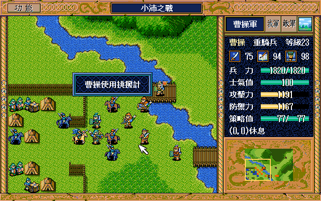 图片附件: [第 5回合 騎兵3(原在兵營)先攻擊張飛,曹操左2挑撥張飛(讓之後騎兵2可左下牽制張飛)] 08-05e.png (2015-11-20 23:29, 73.08 K)