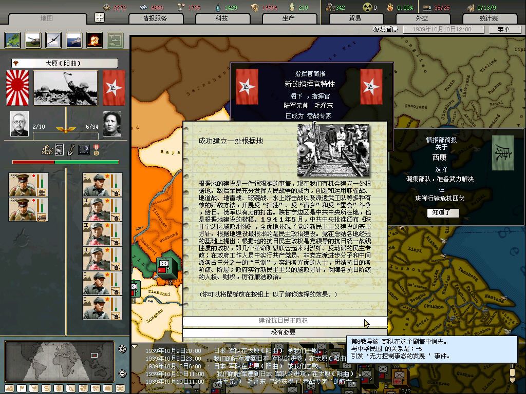 38年触发并不困难,但会削弱我方战斗力,所以一直等到汾阳驻军超出12师,单点突破力已达瓶颈才动手