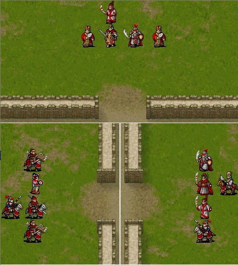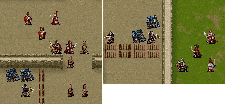 最内层还有几个炮车,依然是两个步兵并排吸引火力。