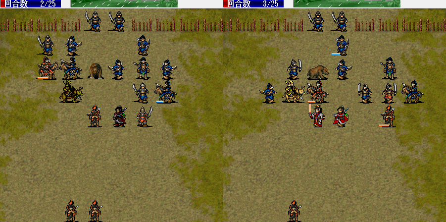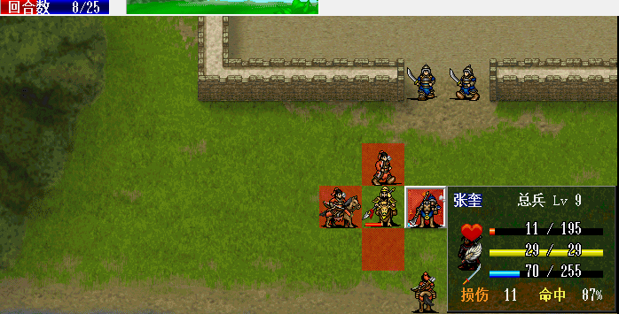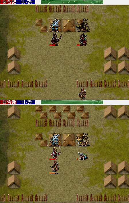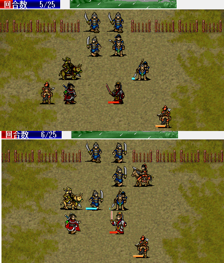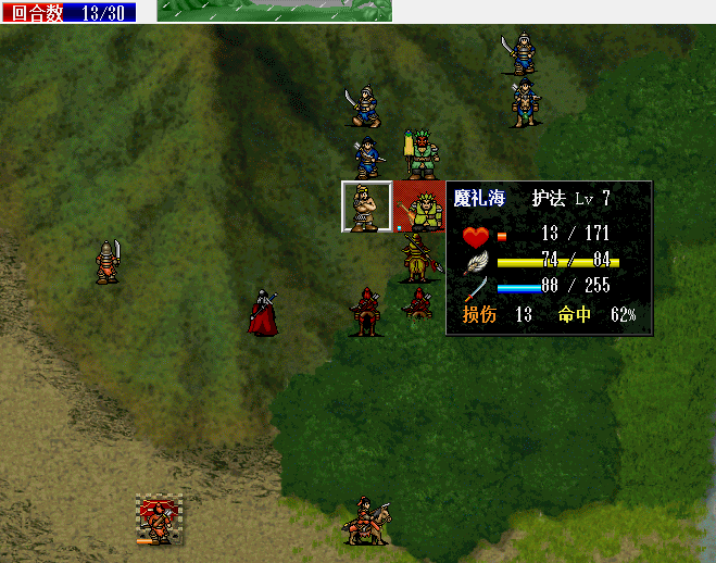 围攻击退魔礼青旁边的步兵。11回合击退天化暴击击退魔礼青