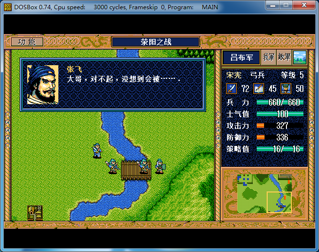 另外把刘备兵种变非步兵系程序会出错(强行变不是用道具)应该不是形象的问题,我用likelove的dosbox内存修改工具把seg002:747E改成了29h,可以正常显示放火(29)放水(2A)和混乱,并且可以正常移动,因为那就是一张贴图。