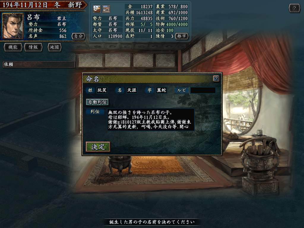3用VAN太守那个内存修改器使用登陆武将的补丁(主要是跳过名字最后那个什么平假名的选项)
