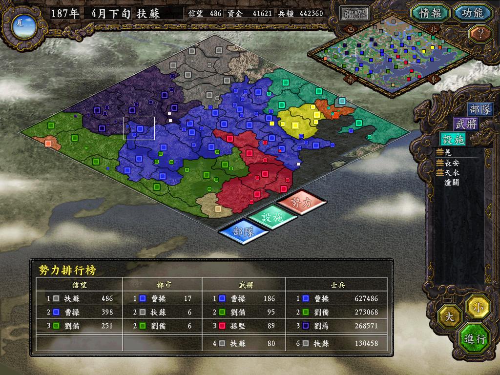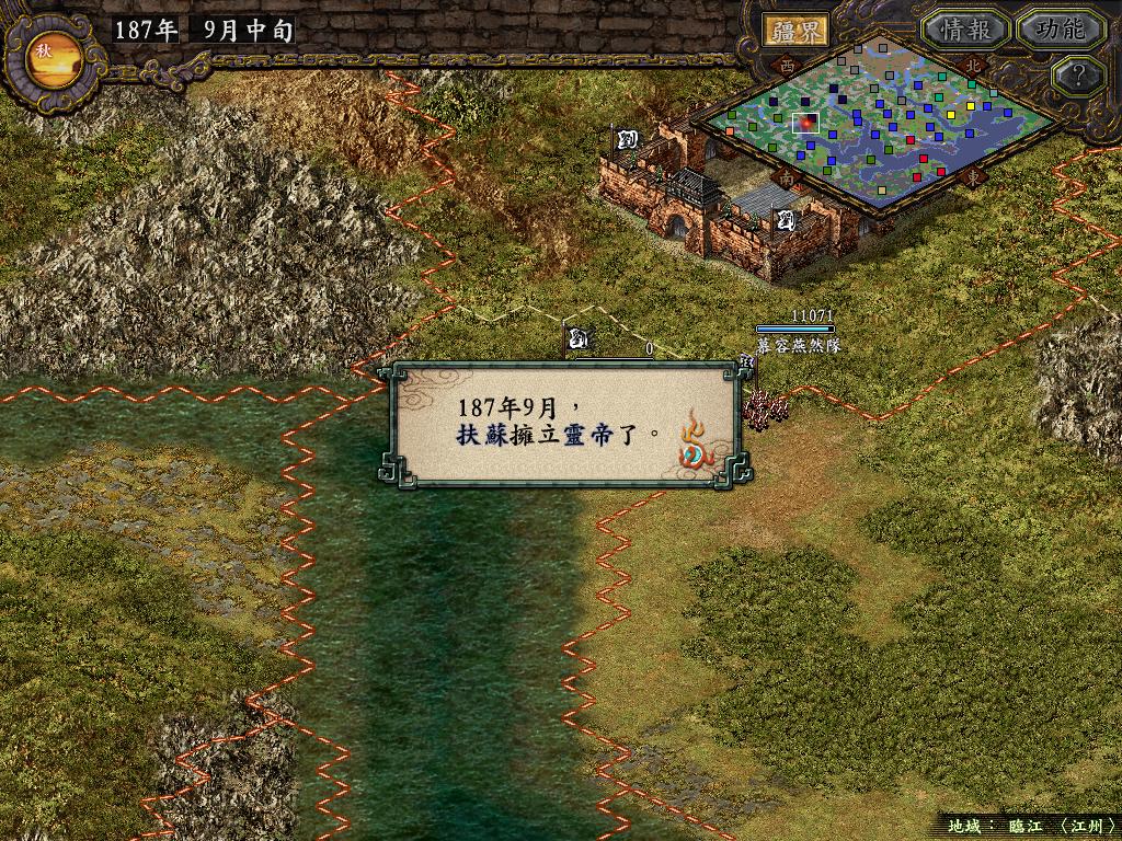 此时我向秦王进谏,平羌要远征西域,路途遥远,且羌人粗犷尚武,恐会作困兽之斗,我军伤亡必众;因此平羌后要休养生息,恢复军力,如此则当交好刘焉,减少前线城池的压力。秦王嘉某言,命陈宫出使蜀地,与刘焉修好。