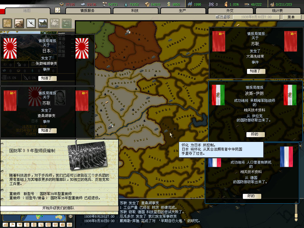 AI民国的部队补给稀缺,导致组织度常年极低下。科研又差,打N多年也升不上36师。一堆18年的部队和一些民兵配合一个要塞师,甭管地堡啊山地啊都顶不住日军3处或3处以上夹击。