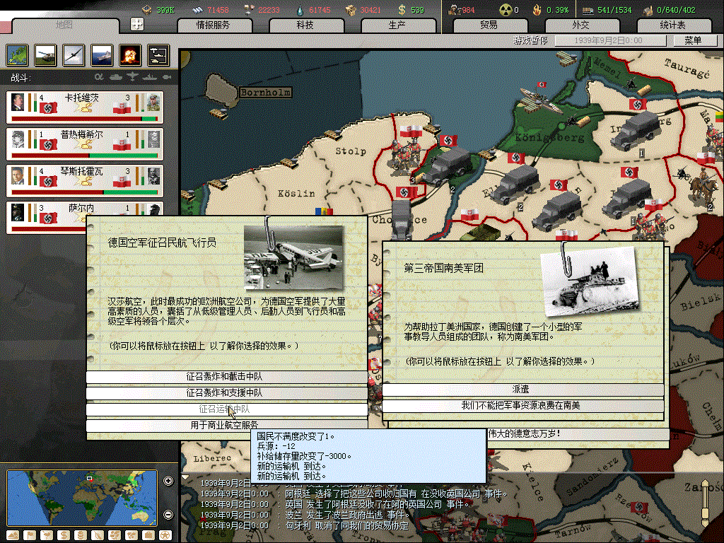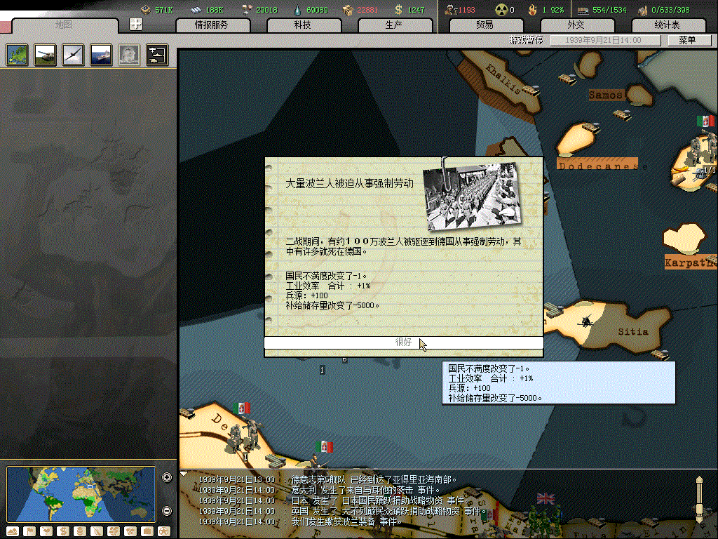 这个版本游击队太厉害了,北非军团的条件是什么?为什么我的补给都40000了还不出?还有意大利登陆马耳他岛的条件?还有就是占领重要城市不减不满了??还有就是失去重要城市的时候事件有误,应该是-10TC,结果变成了+10TC。。。。。