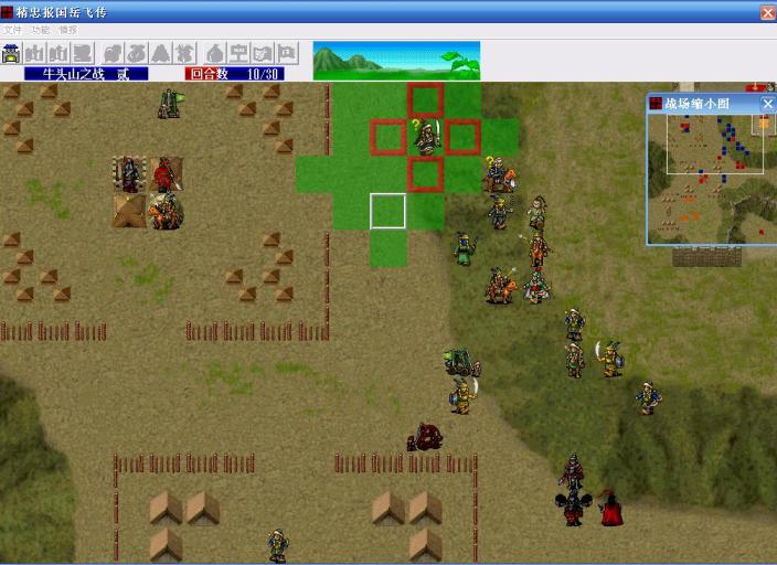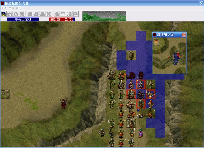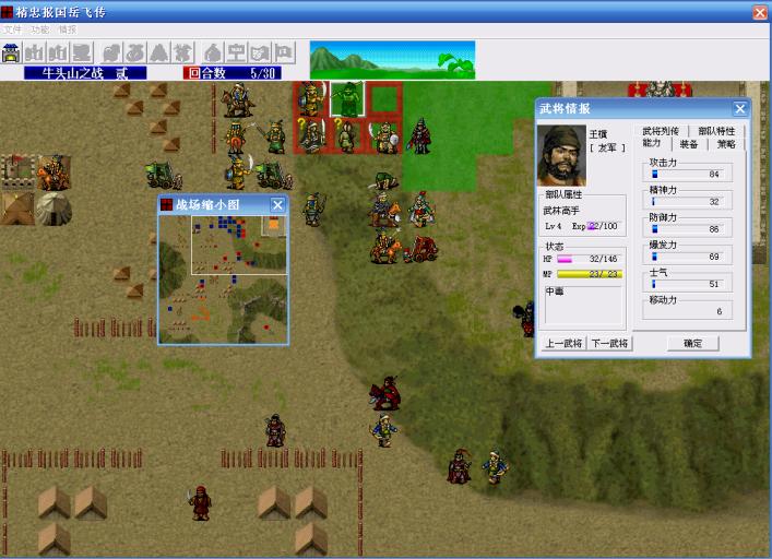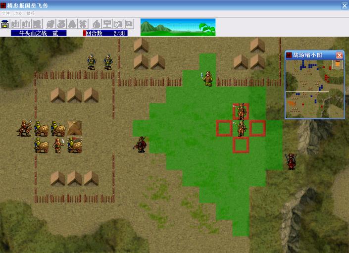 牛皋转参军后移动力7格为我军最高,前几个回合先帮着我军布阵,完成任务后绕过山去,在山上消耗贼兵和道士的策略,最后几回合高宗开始行动后还要负责堵他一回合的路。