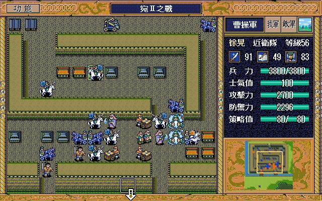 对这四个人再解释一次:刘辟其实很好养的,从瓦口开始前期反击杀伤并不大,后期往往可以让他单独行动,弄个村庄或鹿砦,放个敌骑(最好是名将)在里面就行了, 之所以要求后期追级的贼策略要高原因就在这里;剩下3个大策略者,陈式一个人有富余,按我的进度宛II以后3战都可以再上1个大策略;沙摩柯只需占4个位置就可以用襄阳青囊,所以只需再挤出1战即可;藩宫前面一直可以压级,按木之的成绩到雒I为47.93级,刨去2主将算47级,兖州之后只出了江陵、公安、雒I三战62回合,后面还有没有烧火机会要再算过,但即使现在就变战车也比关纯优了。请注意,关纯天然出成绩应计算到兖州为止,为40级左右,用补丁会高一些,游客丁是42级,再多就要挤占他人资源了。