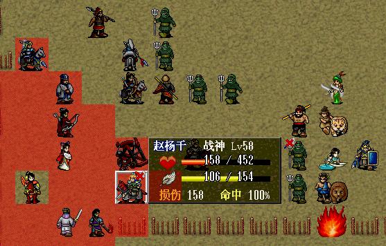 此时骑兵部队出现在左下迎战十铁骑,法师部队出现在右下迎战五法师五道士,步兵部队出现在右上迎战二贼二虎二熊二武术家,弓兵部队出现在左上迎战二炮车二弓骑二弓兵