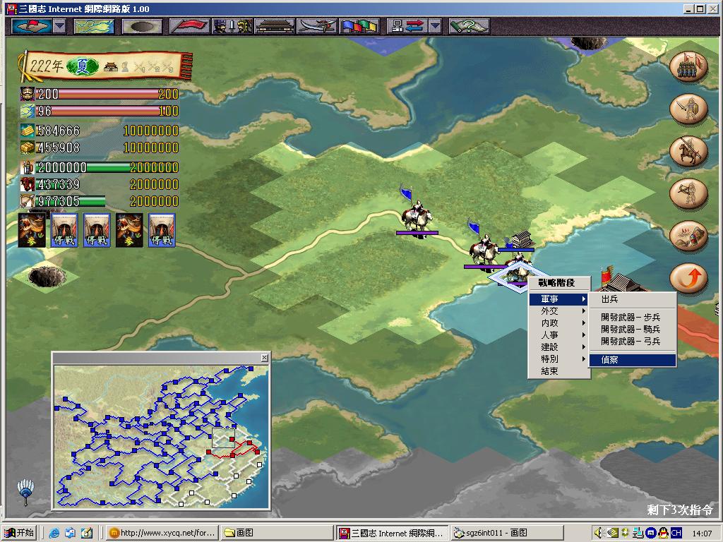 至于屏蔽敌方信息,这个考虑是不错,可以参考三10的模式。不过这样的话似乎就应该相应增加谍报功能,如三10一样,否则游戏的难度就成了依靠单纯的偶然性,违背了知彼知己的战略游戏精神。但这一点在三9中恐极难实现。