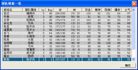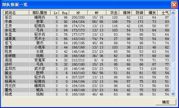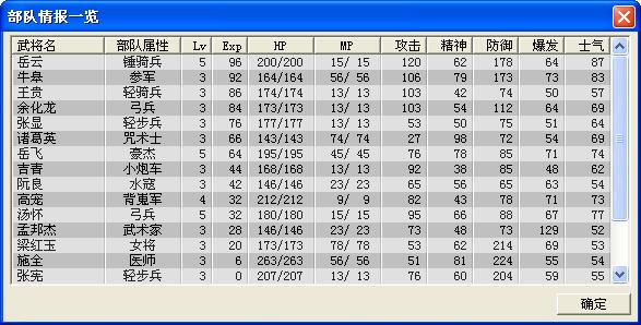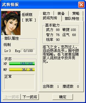 根据之前各战选择培养出理论值武力88统率84智力80敏捷100运气66的岳银瓶