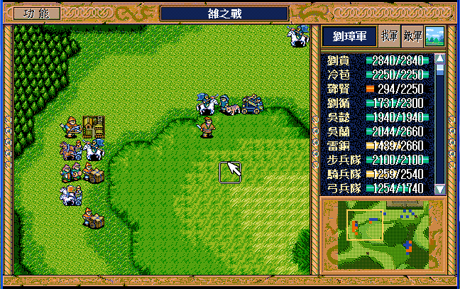 第11回合-17回合:诸葛往上走混乱一个骑兵后烧两次大焦热然后绕过来还能烧一次,董梁在马谡右边反击雷铜和骑兵,马谡用书,吴兰焦热,步兵一直攻击吴兰,不能激励吴兰让他士气越来越低,刘辟和赵云在树林里反击两个猛兽,刘备收服李严,和伊籍配合把左边敌军都混乱,董梁反击死骑兵后到高沛右边反击高沛和雷铜,张飞引出一个异民族。