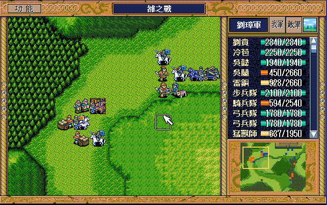 雷铜骑兵攻击董梁,两个猛兽攻击刘辟,高沛攻击诸葛,费观火龙糜芳成功,