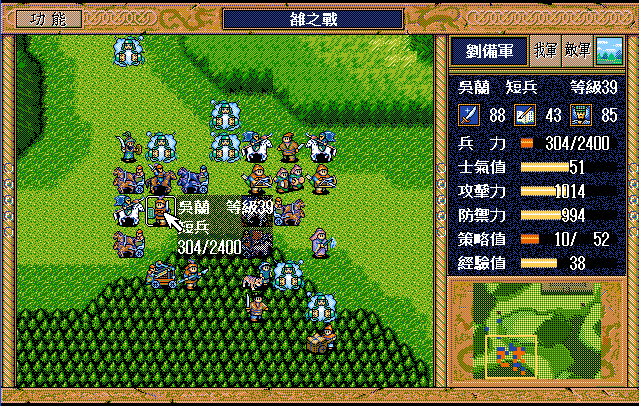 第8回合:简雍援助吴兰,吴兰到刘贵左边用焦热书,董梁下移两格援助自己,诸葛到右边骑兵下面牵制,刘辟到混乱的猛兽左下攻击