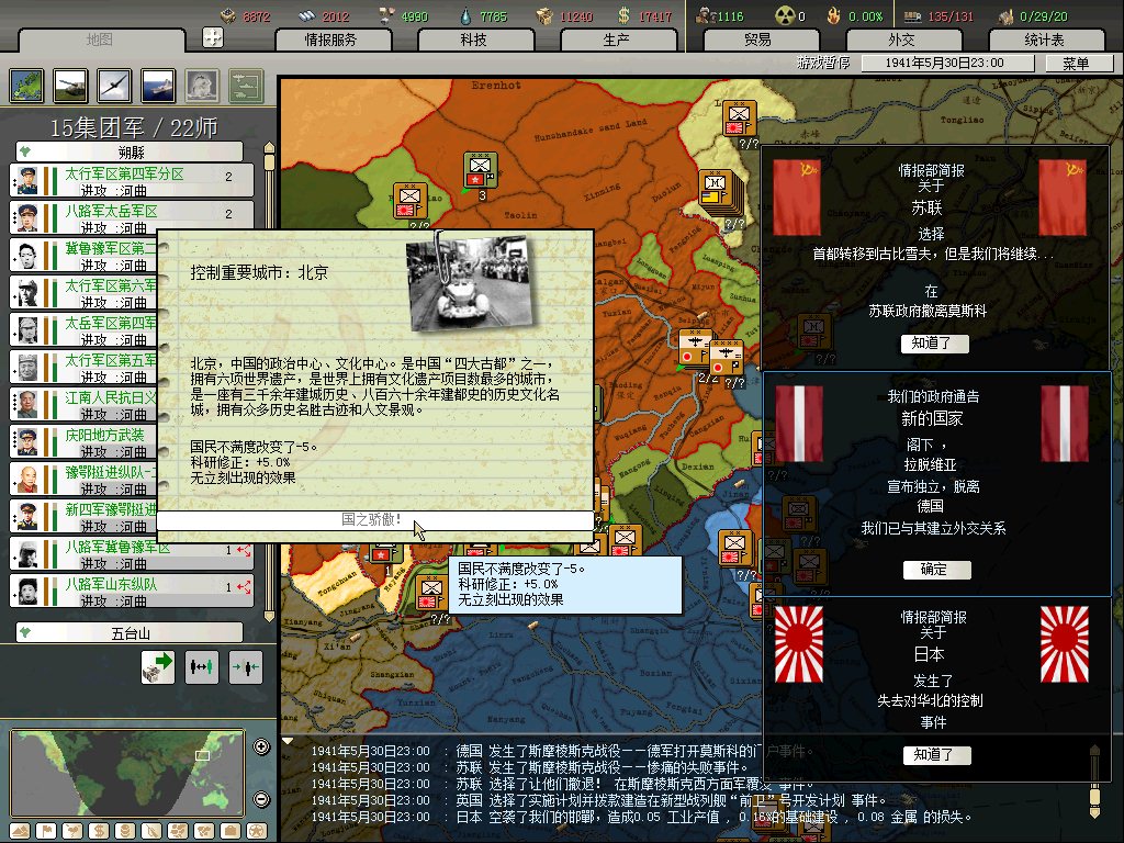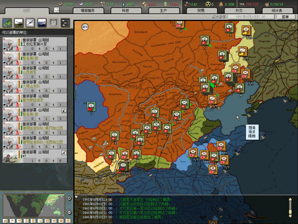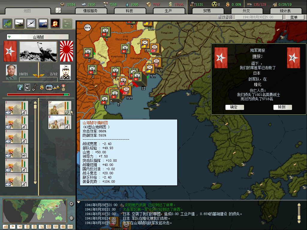 后面太顺利,没发的意义了,消化东三省后,留下标准常备及几个山地在鸭绿江玩耍