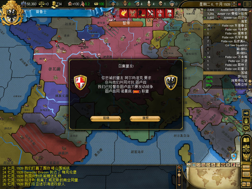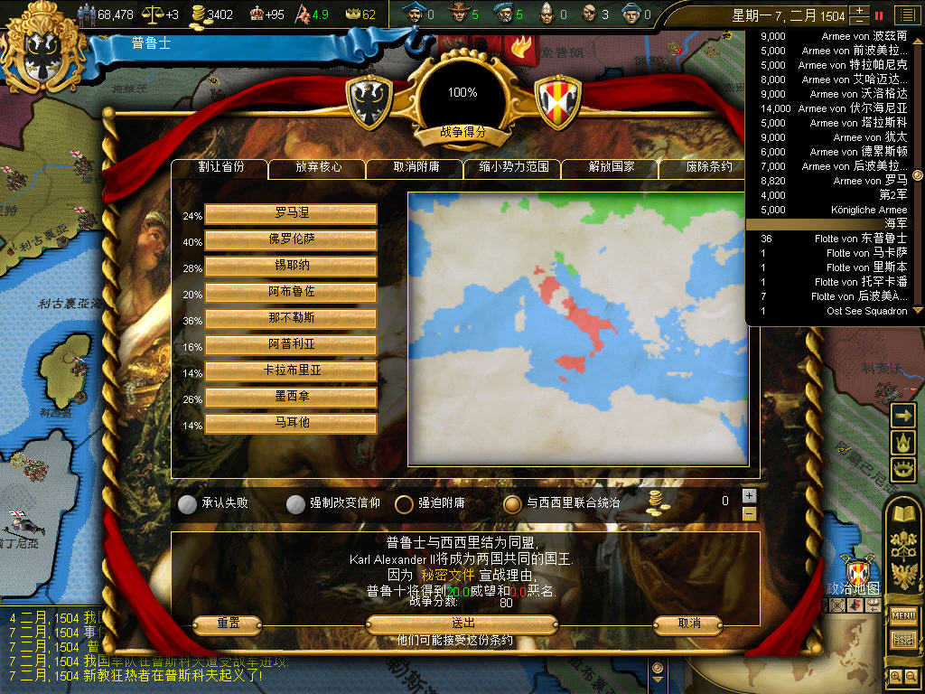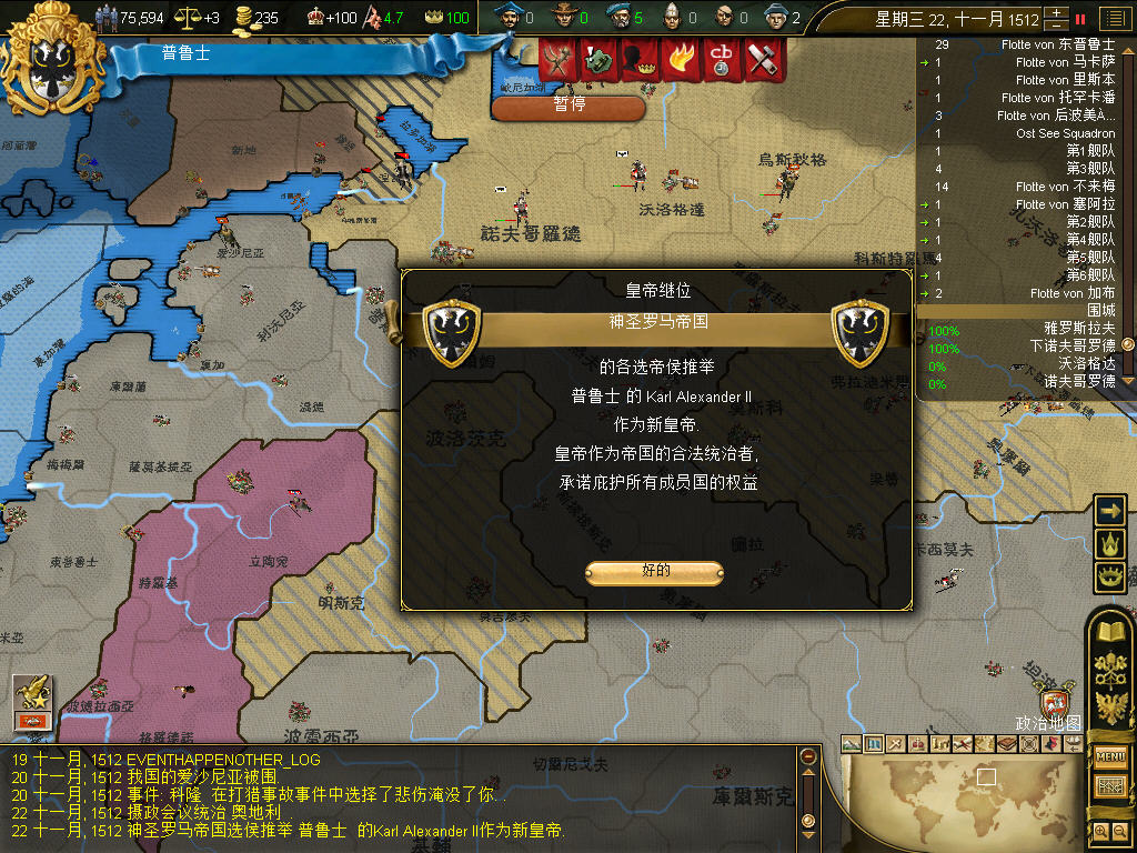奥地利的老国王去世后,现在是摄政会议阶段,在给他丢间谍降稳定,等正统降到30就可以去强制联统奥地利了,呵呵