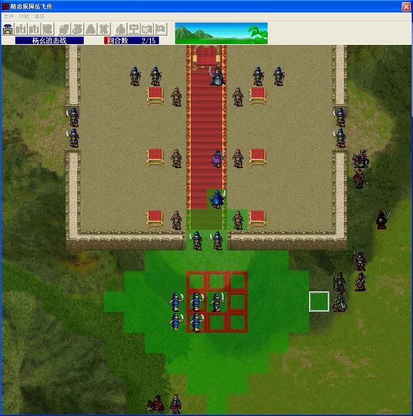 戚方灭掉两步兵并保留较多HP后,岳云进入城砦右边兵营触发伏兵,杨虎走到右中四水寇中第三名水寇出场的位置