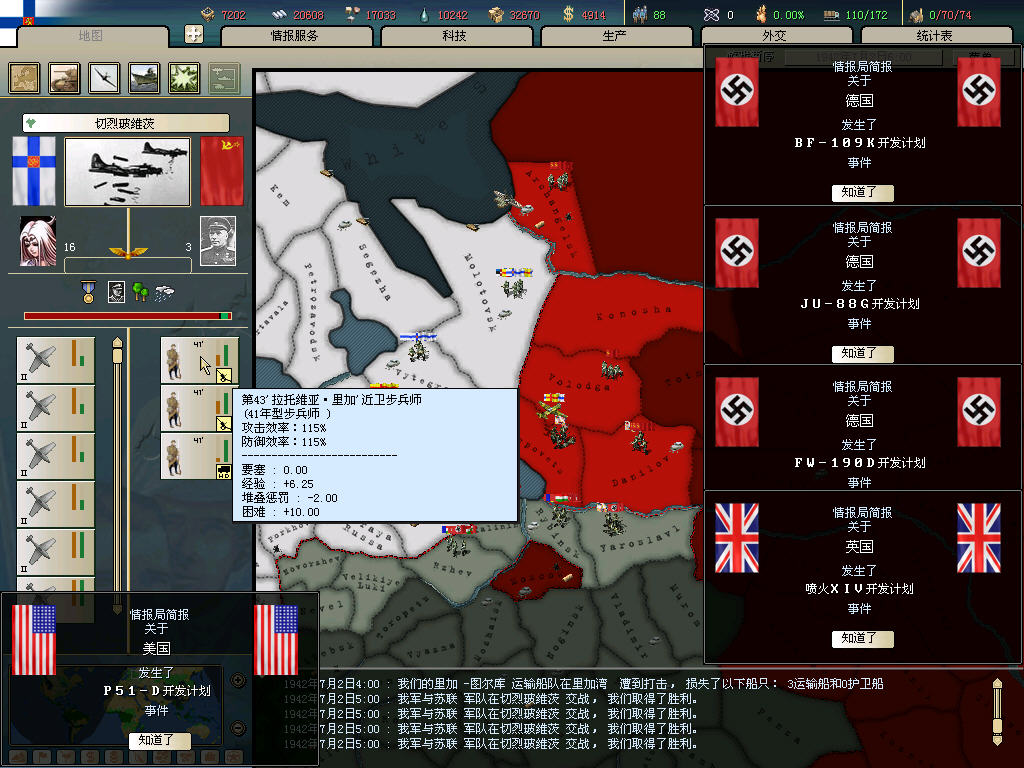 同盟占优,但德日战斗力依然很强.苏联截击消耗近半,难怪很少遇见.