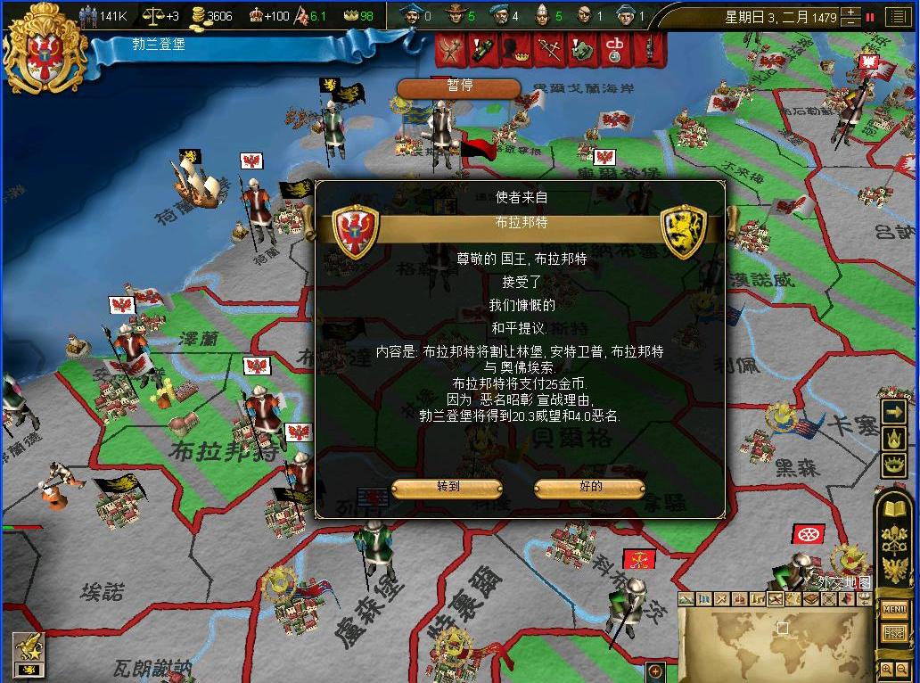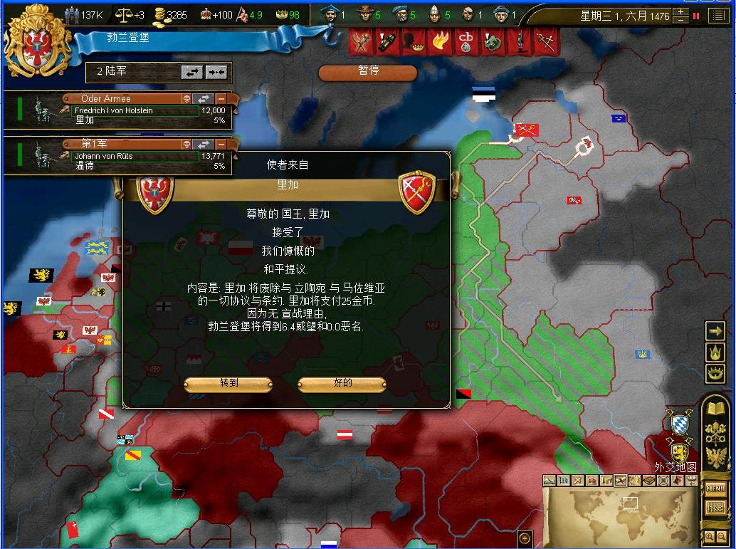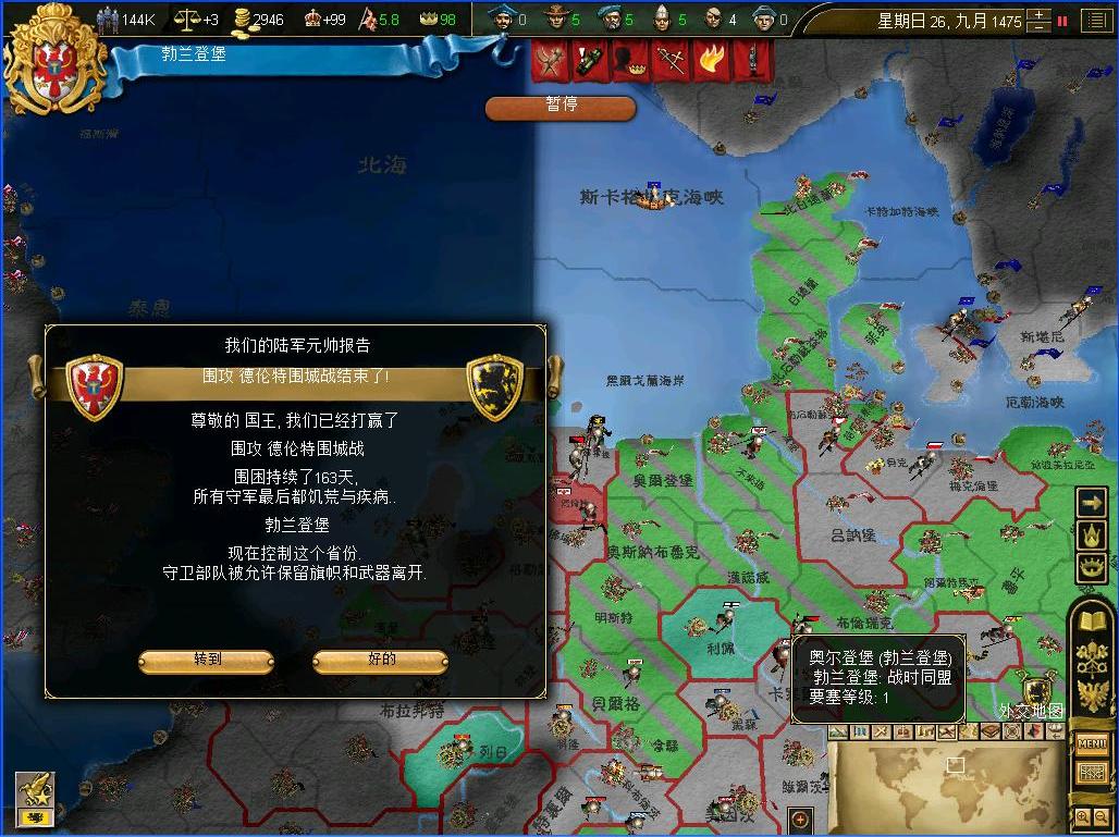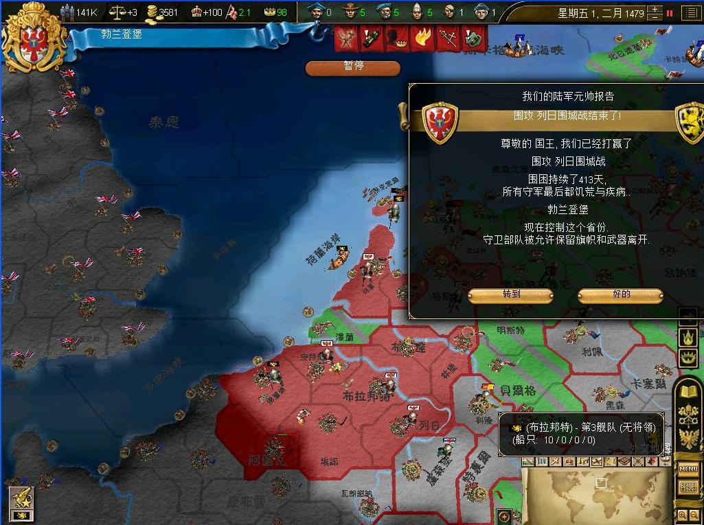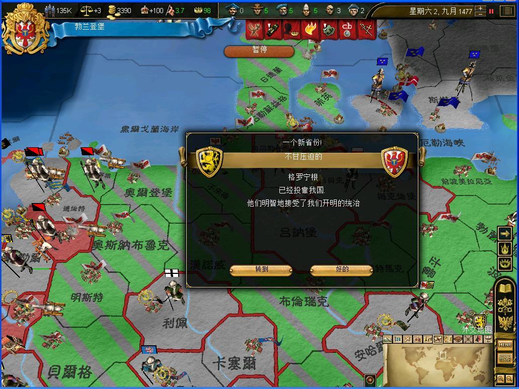 用了136天就拿下了德伦特,接下来的问题是怎么处理这个省份了....如果吞并吧?需要增加6点的bb,太亏了....