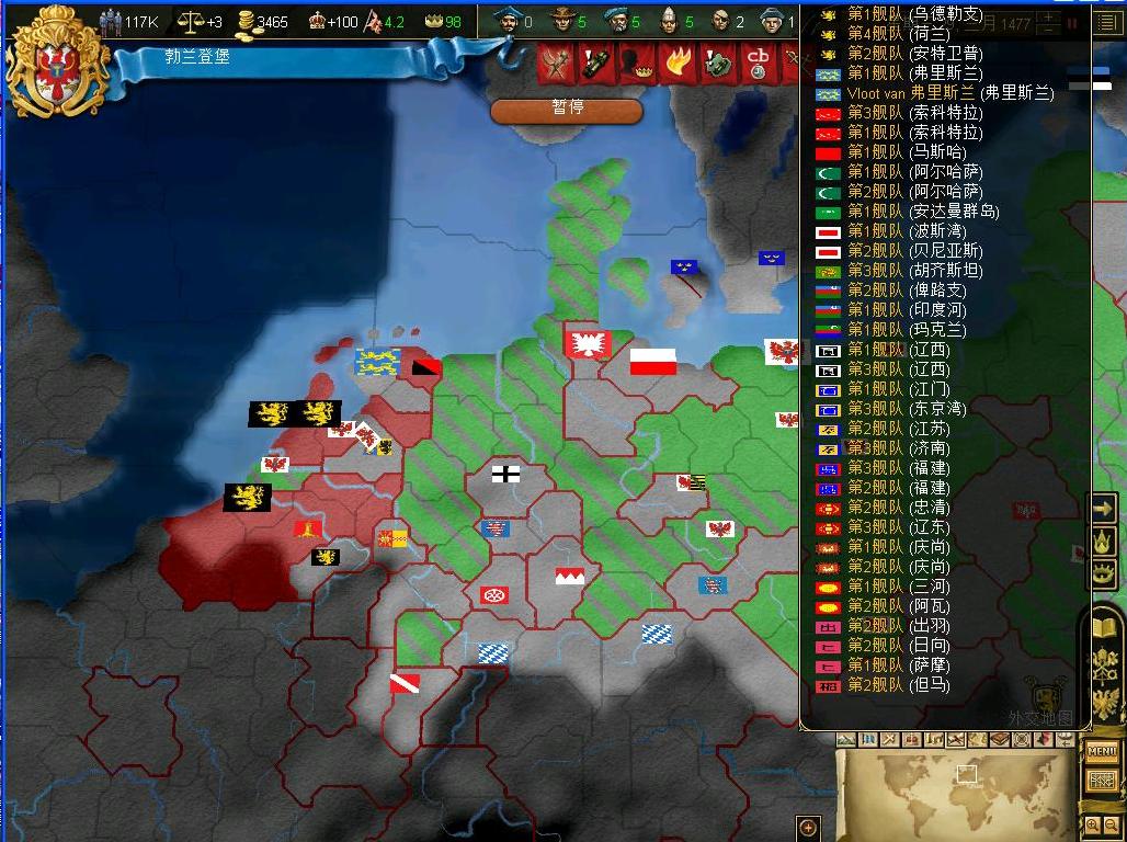 佛兰德斯就没有啥兵力,才一个省份,只有2k的步兵,直接被我大军碾过....