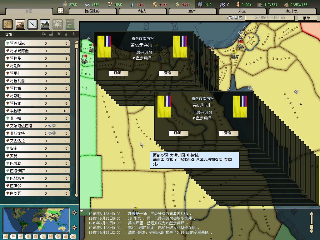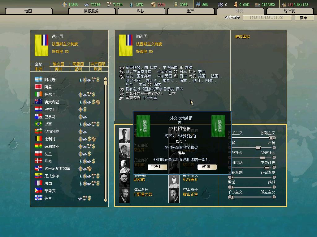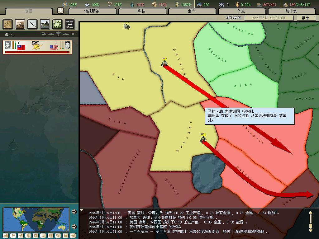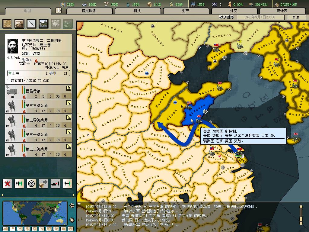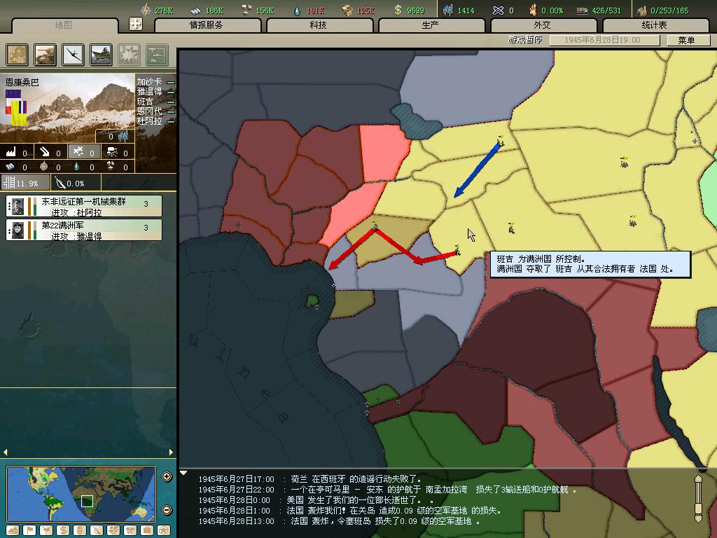 标题: DA1.3原版36满州国娱乐战报, 已更新至:1948年夏季 中日满轴心对抗英法美同盟 欧洲反攻势如破竹 攻陷华沙 吞并波兰!