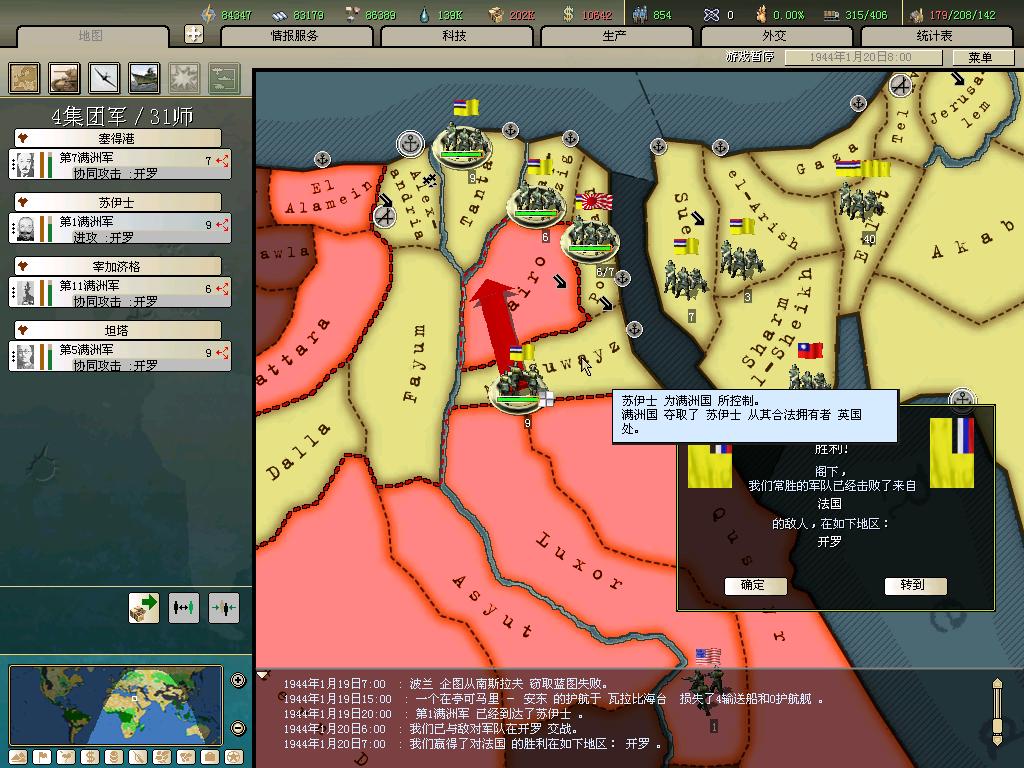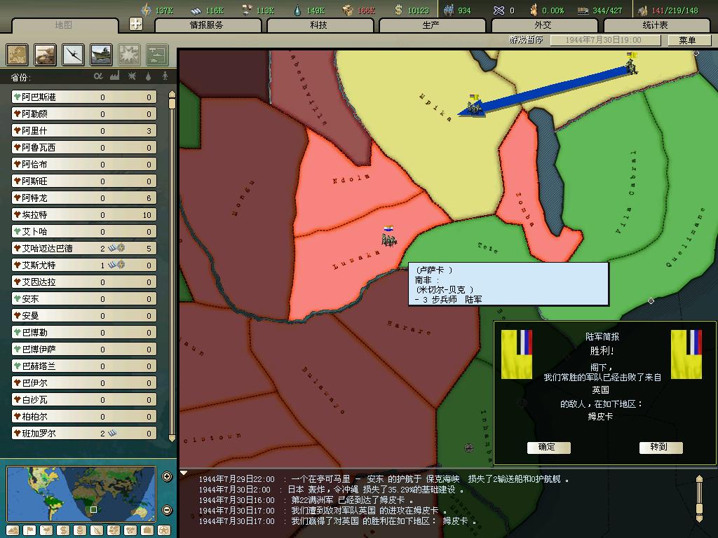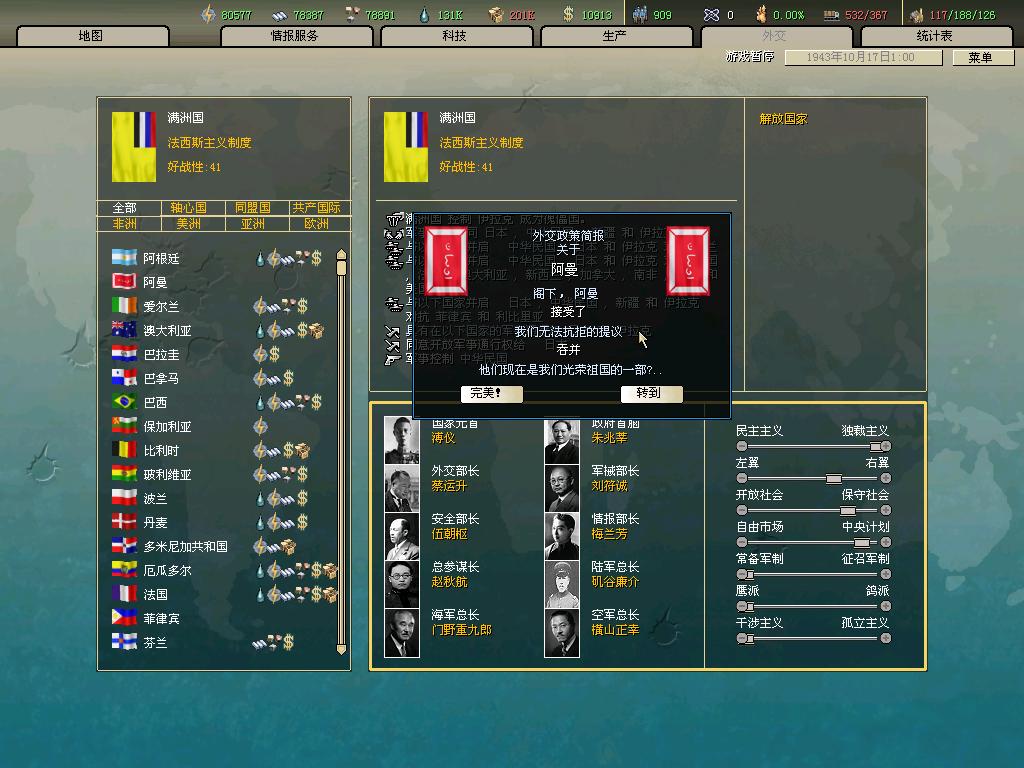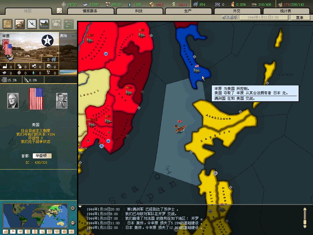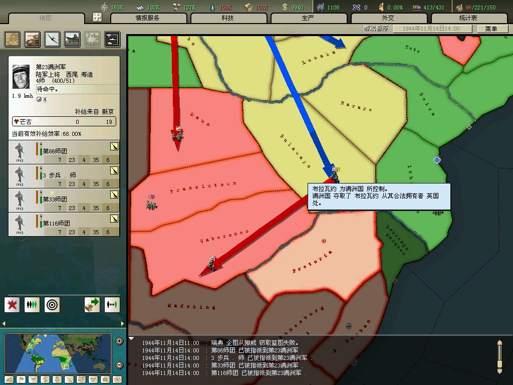 标题: DA1.3原版36满州国娱乐战报, 已更新至:1948年夏季 中日满轴心对抗英法美同盟 欧洲反攻势如破竹 攻陷华沙 吞并波兰!