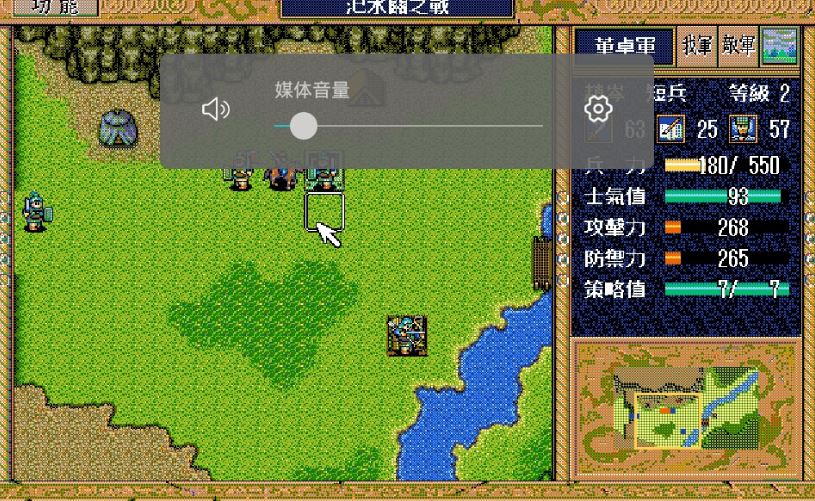 我 刘备右攻步兵1,关羽右3上1激励自己,赵云上攻 关纯右方漩涡灭于禁,藩宫右上攻 张飞上攻灭步兵2,简雍右方假情报弓兵1(失败);