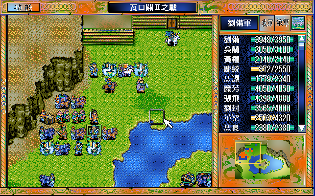 最后策略有剩余,前期如果刘辟多补充策略,可以晚点变阵,董梁可以多反击几次,但这关实在是sl的吐血了,经常要控制2-3个敌军走位,到特定位置援助特定的人