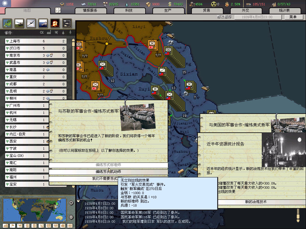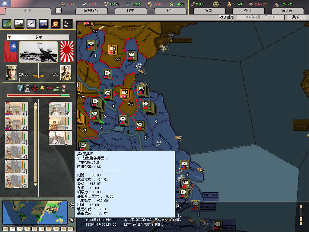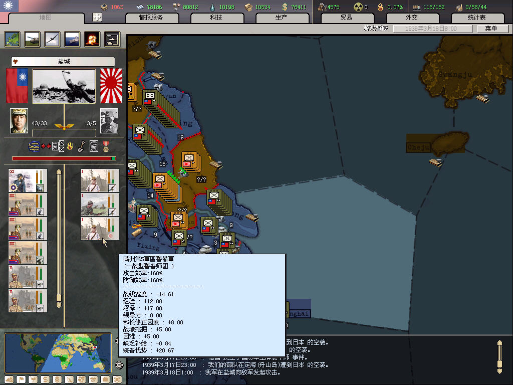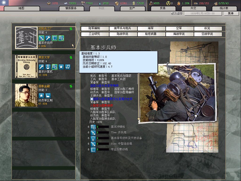 好吧,我承认2级动员科技我研究晚了是个巨大失误。每个陆军兵种几乎都减了2个月的建设时间