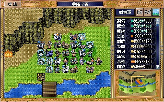 43回合就是 李明上一 刘备下激励李明 吴兰左一援助自己 藩宫、陈式左一上一 庞统右二 老沙右一下一大浊流 王平下二救济刘辟 马良援助老沙 关纯援助黄权 刘封援助自己或者混乱甘宁 不混乱的话 正好让他打一下陈式 制造士气缺口 可以下回合再混乱 这不是重点