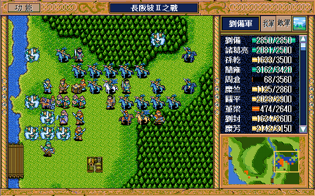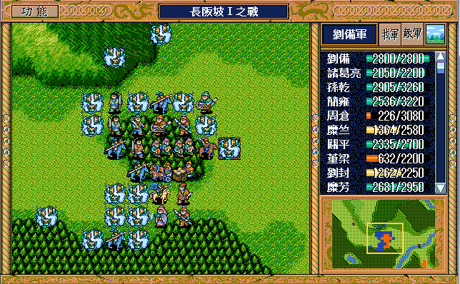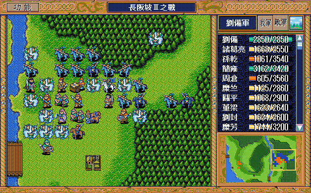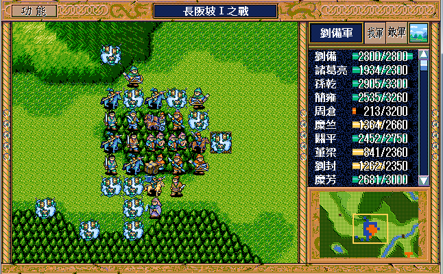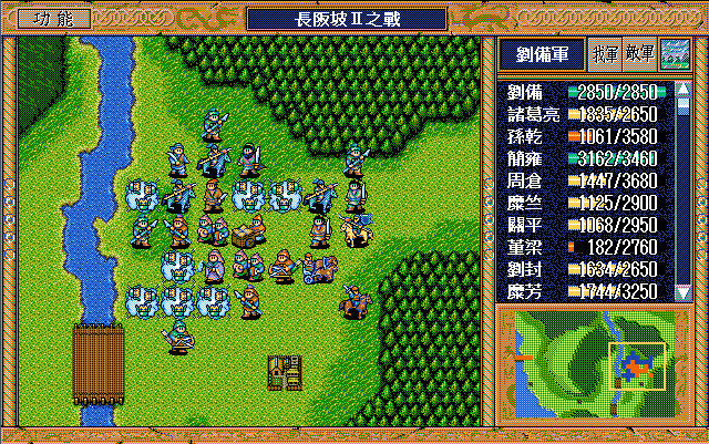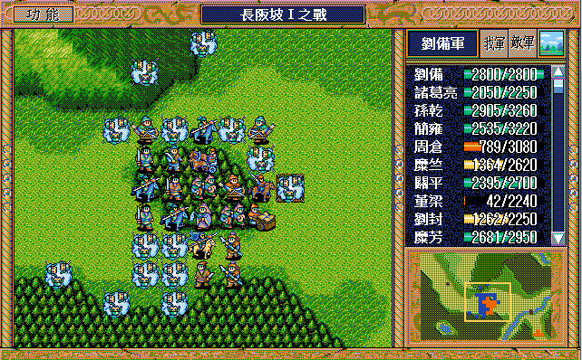 此时我方还有赤兔马、5把武器、2剑术指南书、弓术指南书、长枪共10个道具,加上新买的68个道具,空位绰绰有余,只要刘备、赵云身上不带满道具即可。