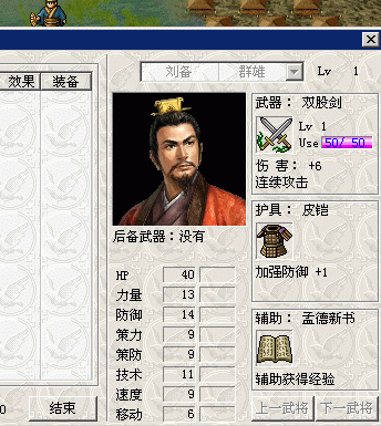 战场中普通状态下鼠标移过武将显示情报