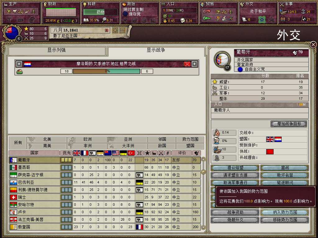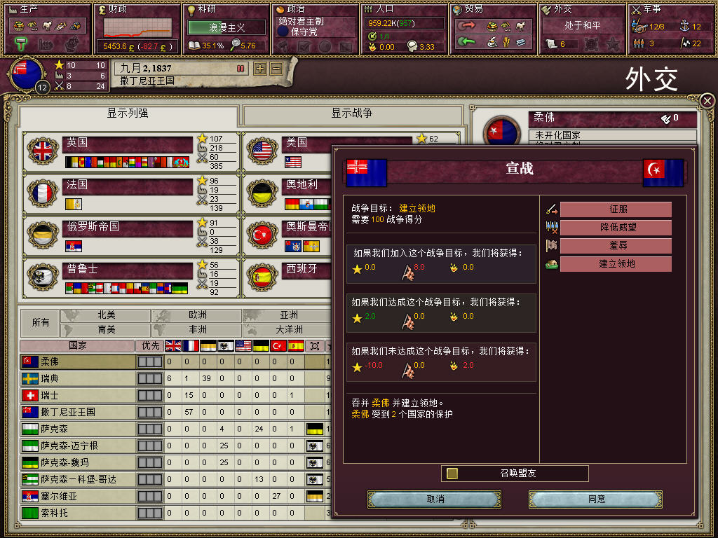 难度选的正常,版本1.2汉化版,未使用任何MOD,VIC2好像没有侵略度的选择,反正我是没有找到。