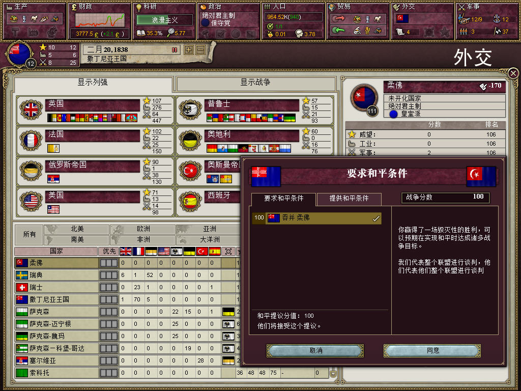 VIC2开的第一个国家就是普鲁士,毫无压力的推倒茜茜公主和他老公