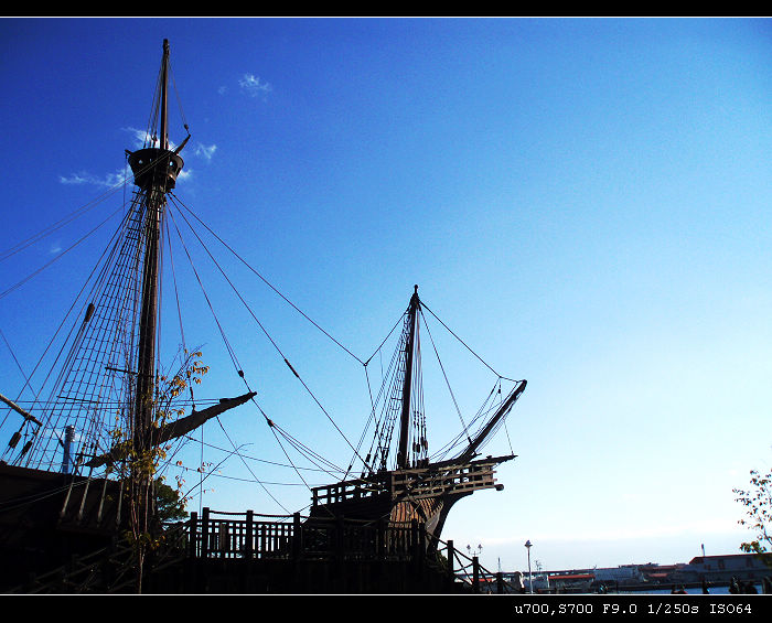 蔚蓝的天空,黑褐的帆船,这样拍出的剪影大概有种航海时代的意味,依念故土时的思盼之情,融释在其中。