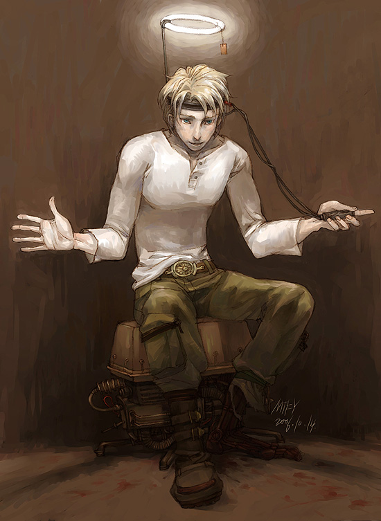 第二张有些搞笑意味,日光灯环下的堕落天使。