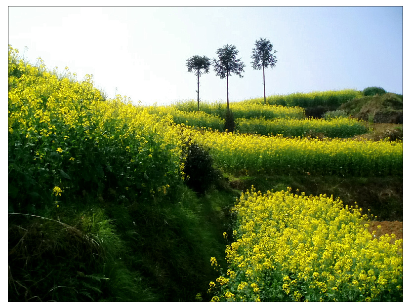 油菜花上,有树随风摇曳,沁人心脾。