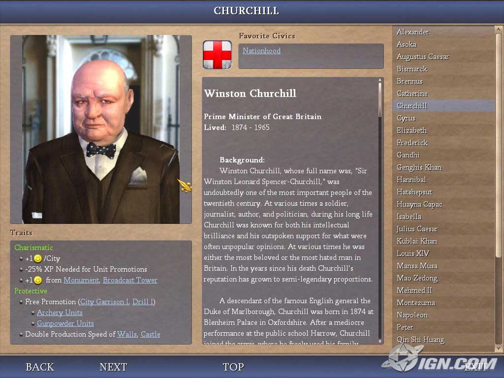 Charismatic 魅力超群 (魅力): 每座城市 +2[快乐], 单位晋升花费 -25%, 广播塔效果加倍